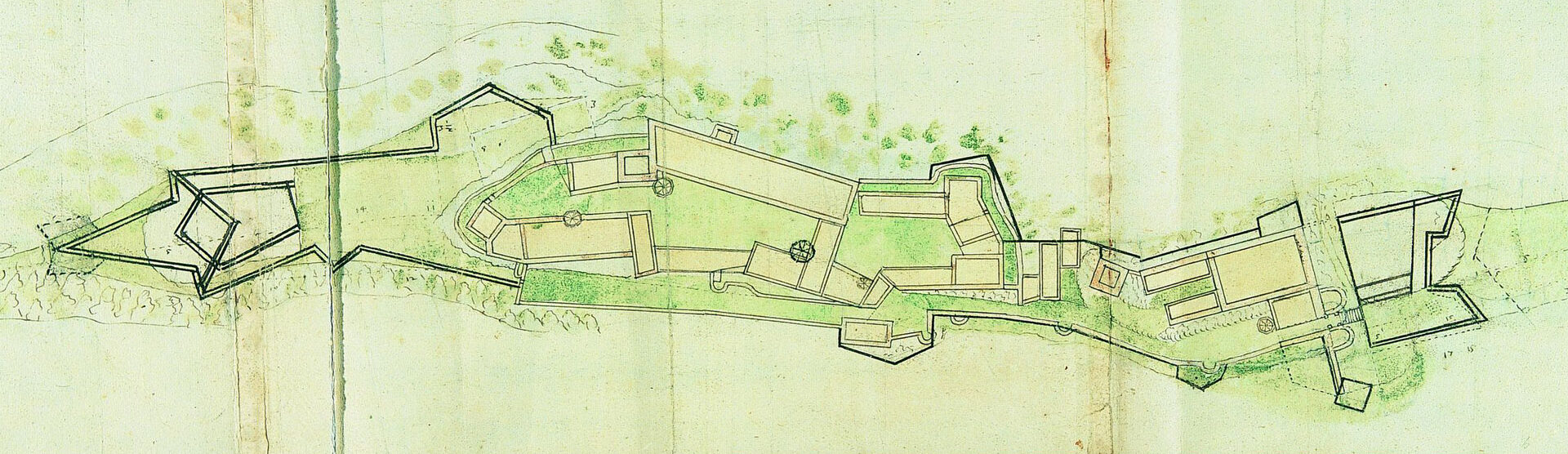 Der Ausbau zur Festung erfolgt vor dem Hintergrund einer befürchteten osmanischen Invasion in der zweiten Hälfte des 17. Jahrhunderts, zu der es allerdings nicht kommt. Spuren der damaligen Befestigung sind noch heute erhalten. Zu den Wehranlagen gehörte der heute nördlich des Torhauses vor dem Löwenbrunnen zugängliche Aussichtspunkt – die sogenannte Bastion. Auch südlich des Kaisersaalgebäudes finden sich noch Spuren der ehemaligen Bastionen.