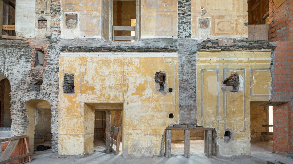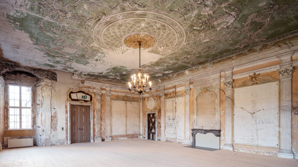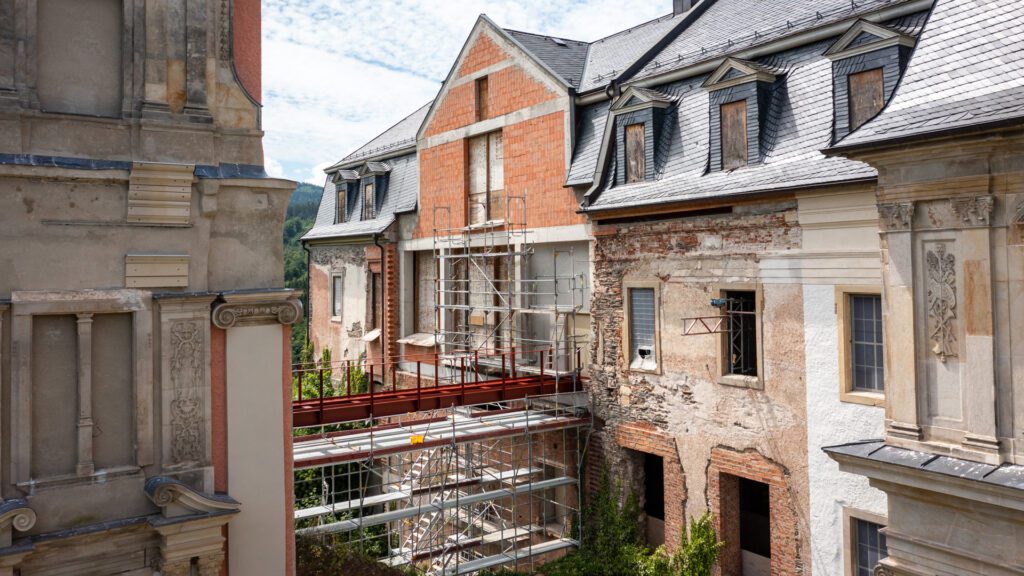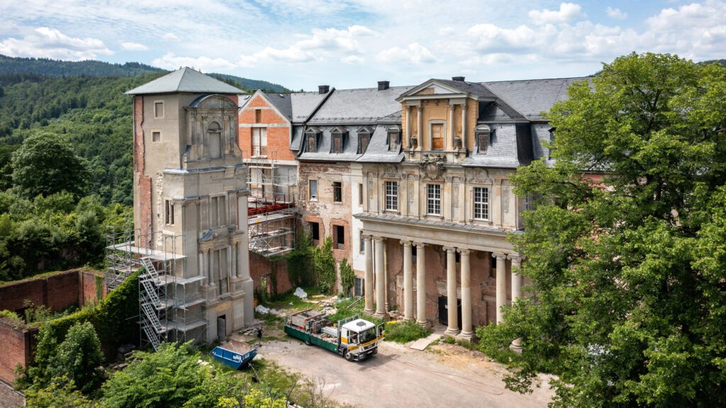 Nachdem das Schloss-Hauptgebäude vor knapp 80 Jahren als Bauruine zurückgelassen wurde, können seit 2021 erstmals wieder zwei Räume im Hauptgebäude genutzt werden. Mit der Rückkehr des Kronleuchters fanden die Arbeiten im Schloss-Hauptgebäude ihren krönenden Abschluss und der historische Lichtspender konnte nach einer langen Reise heimkehren.