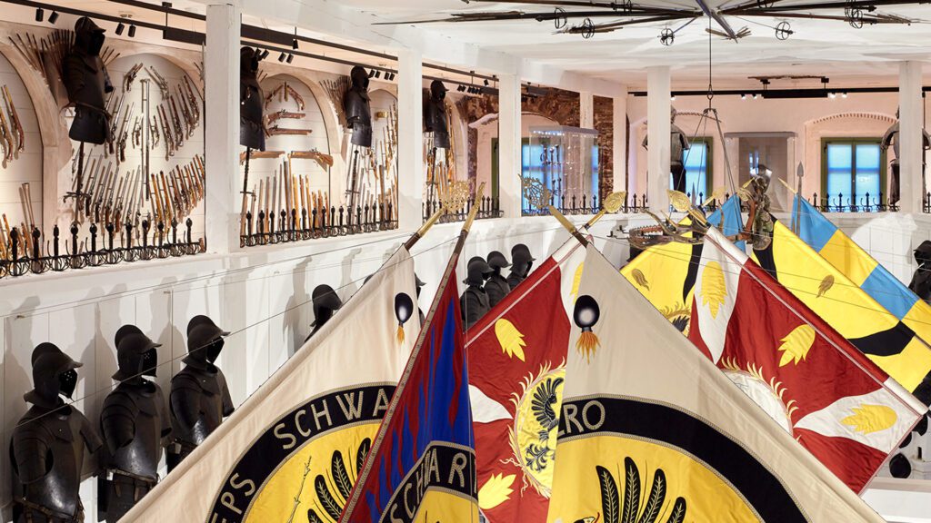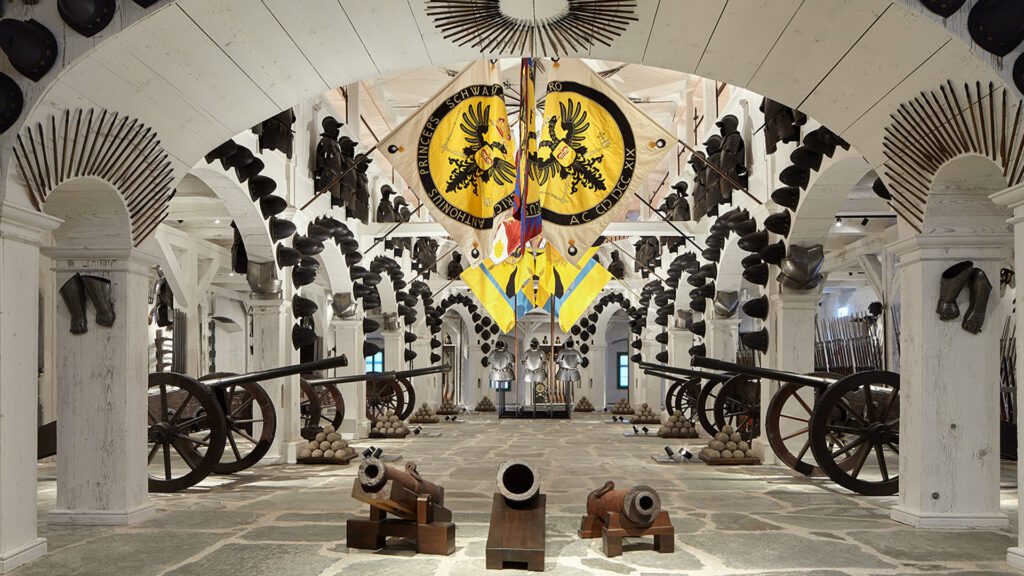 Kanonen, Harnische, Helme, zahlreiche Prunkwaffen – seit 2018 ist im Zeughaus am nördlichen Zugang zur Schlossanlage wieder die einst über 5.000 Objekte umfassende Schauwaffensammlung der Grafen und Fürsten von Schwarzburg-Rudolstadt zu entdecken.