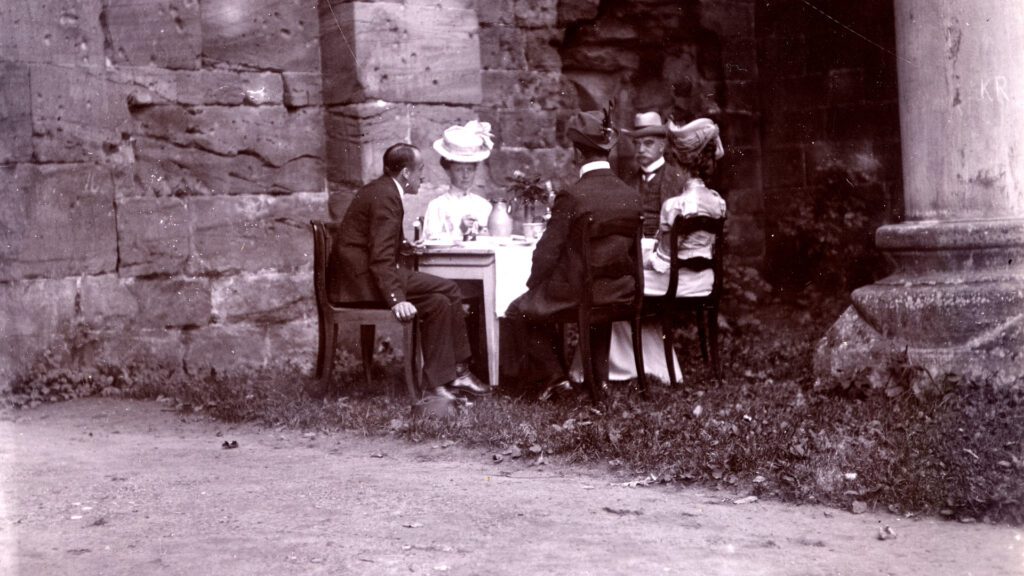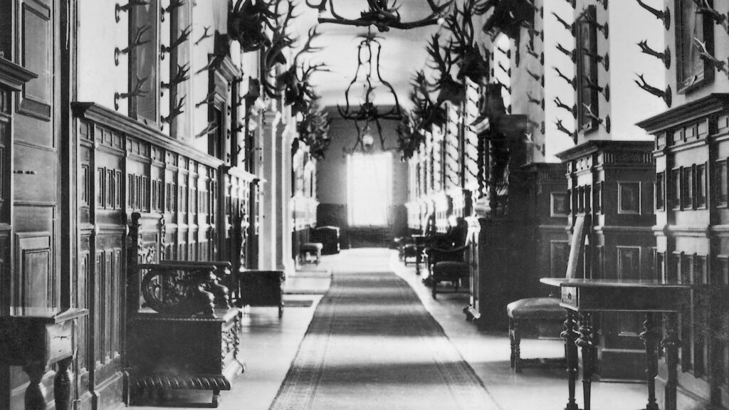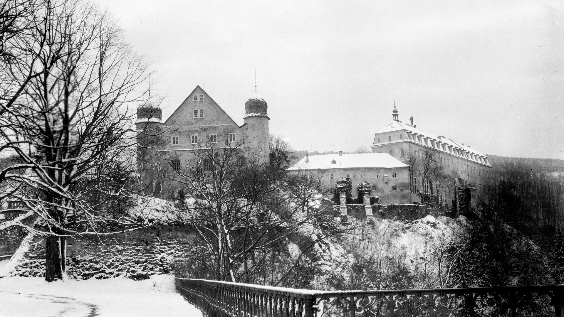 Freizeitvergnügungen im Schlossgarten, Lunch in der Ruine der Klosterkirche Paulinzella, Ansichten der Schlossräume und Flure. Fürstin Anna Luise von Schwarzburg-Rudolstadt war eine begeisterte Fotografin, die in ihren Bildern das Leben und Wohnen auf Schloss Schwarzburg und in der Umgebung einfing. Heute ermöglichen diese Fotos zusammen mit weiteren historischen Fotografien Einblicke in vergangene Zeiten vor den Umbauten der 1940er Jahre. Im 19. Jahrhundert waren die Schlossräume zuletzt umgestaltet worden. Die Spuren der ehemaligen Wandfassungen mit ornamentalen Malereien sind an den Wänden des Emporensaals erkennbar. Auf den beiden Geschossebenen des Emporensaals waren ehemals verschiedene Wohn- und Schlafräume für die fürstliche Familie untergebracht. Die an die Schlossräume angrenzenden langen Flure des Jagdschlosses wurden von zahlreichen Hirschgeweihen geschmückt.