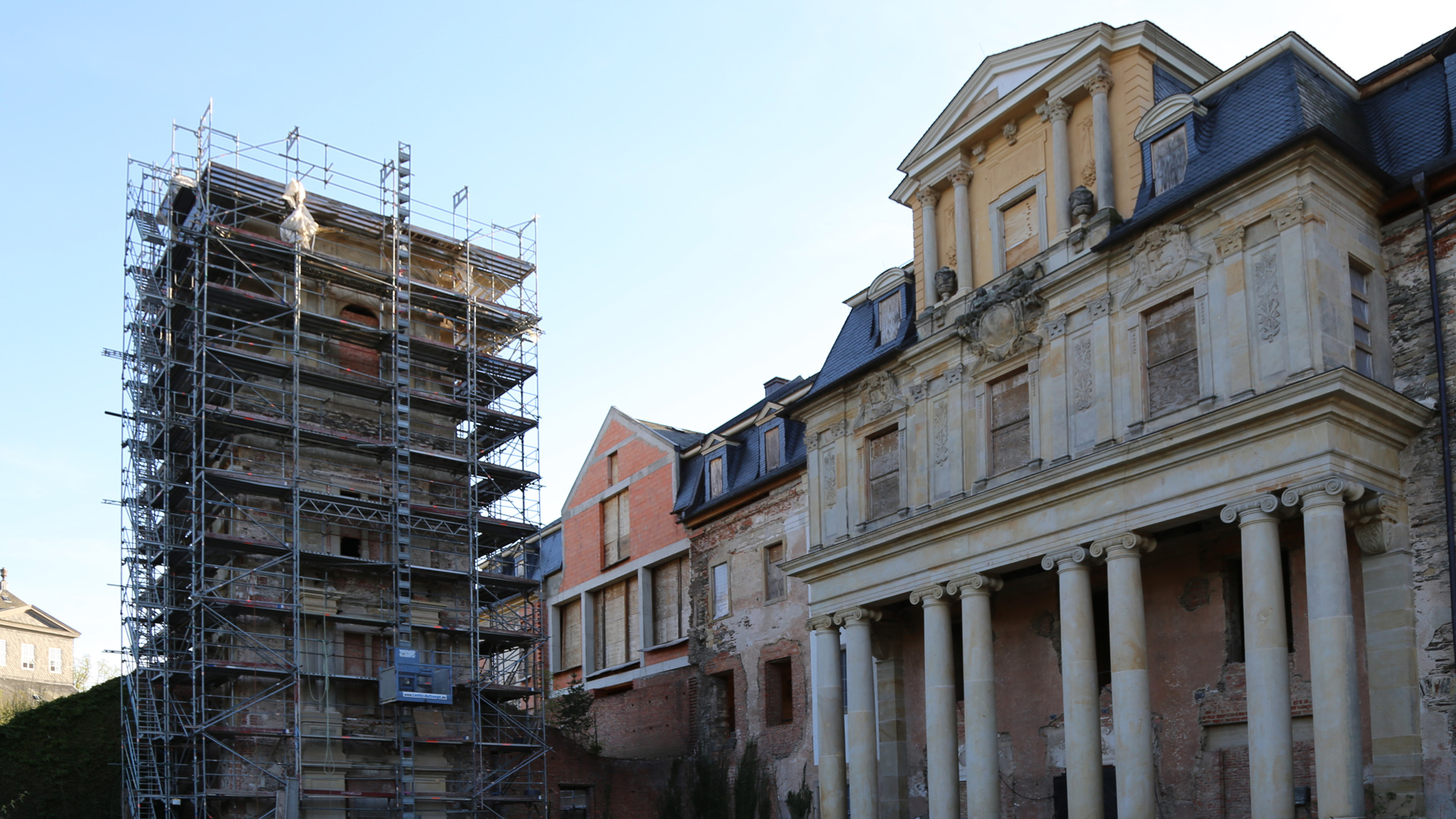 Ab 2010 wurden am Hauptgebäude Sicherungen möglich – nutzungsneutral und auf den puren Bestandserhalt angelegt. Im Mittelpunkt standen abschnittweise das Dach und die Statik des Mauerwerks, auch der Sandsteinportikus musste aufwendig gesichert werden. Der zerstörte nördliche Gebäudeabschluss wurde wieder ergänzt und mit einem Treppenhaus versehen. Zuletzt konnte auch der zwischenzeitlich verlustgefährdete Rest des Schlossturms gesichert werden. Dank einer stählernen Brücke zum Hauptgebäude dient seine Innentreppe nun als zweiter Fluchtweg.