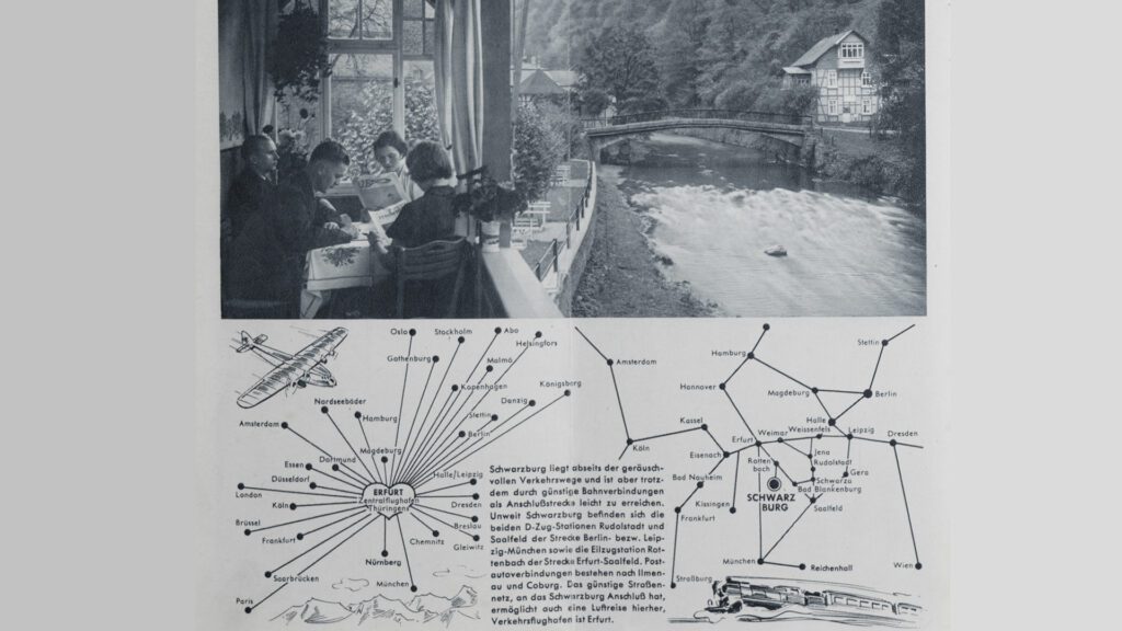 Zu Beginn des 20. Jahrhunderts hatte sich bereits die Bedeutung von Ort und Schloss Schwarzburg für Fremdenverkehr und Sommerfrische eindeutig zu Gunsten des Ortes verschoben. Das Schloss war eine zusätzliche Attraktion und blieb es auch bis 1940. In dem Jahr musste die letzte Fürstin von Schwarzburg-Rudolstadt nach dem Willen der Nationalsozialisten binnen weniger Tage das Schloss für immer räumen und verlassen. Zunächst war es in Schwarzburg das gehobene Bürgertum, das den Ort für sich entdeckte. Mit dem Anschluss der Dörfer durch die Bahn und den dort üblichen preiswerteren Angeboten, setzte sich der Demokratisierungsprozess der Sommerfrische fort. Wer sich keinen eigenen Sommersitz leisten konnte, quartierte sich in Gasthäusern oder Privatquartieren ein, die sich schnell zu Pensionen entwickelten. Von 1880 bis 1940 entstand die typische Sommerfrischearchitektur. Arbeiter aus den rasant wachsenden industriellen Ballungsgebieten konnten die Sommerfrische jedoch noch nicht erleben. Das sollte einer späteren Zeit vorbehalten sein.
