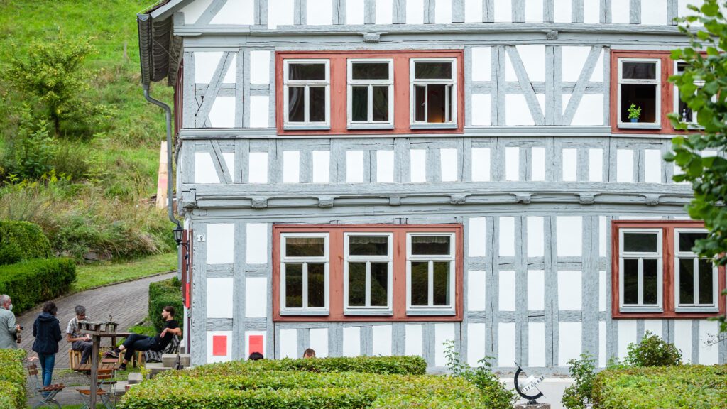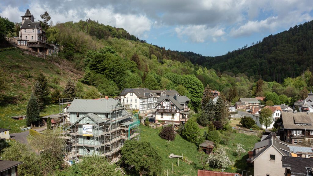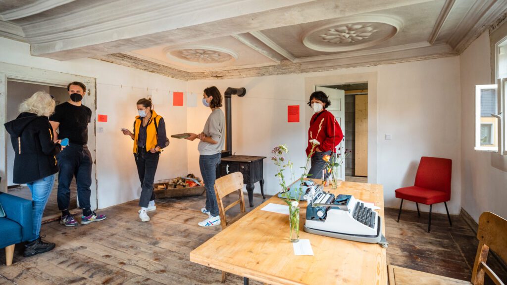 Das Haus Bräutigam in Schwarzburg wird als ein weiteres IBA Projekt Sommerfrische Haus transformiert. Das Gebäude mit Erker und Balkonen hat die Zukunftswerkstatt Schwarztal 2018 vor Abriss kostenfrei von einem privaten Eigentümer übernommen. Inzwischen hat sich ein Verein aus Weimarer Architekt:innen und Gestalter:innen gegründet, der das Haus inklusive des Rückbaus auf den historisch wertvollen Kern umbaut.